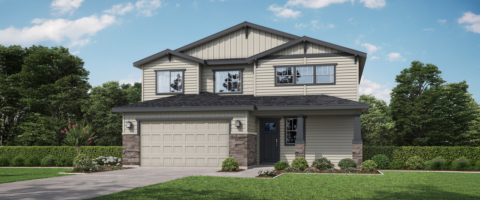 Step into the Glendale, two-story home designed for modern living. On the main level, the bright and open kitchen overlooks the spacious great room and dining nook, creating a seamless flow for entertaining and everyday living. Adjacent to the great room, a dedicated playroom offers a space for children to enjoy playtime and keep toys out of sight. Convenience is key, with a drop zone featuring a mud bench located off the garage is perfect for storing outdoor gear and keeping the home organized. A half bath on this level adds practicality for guests.