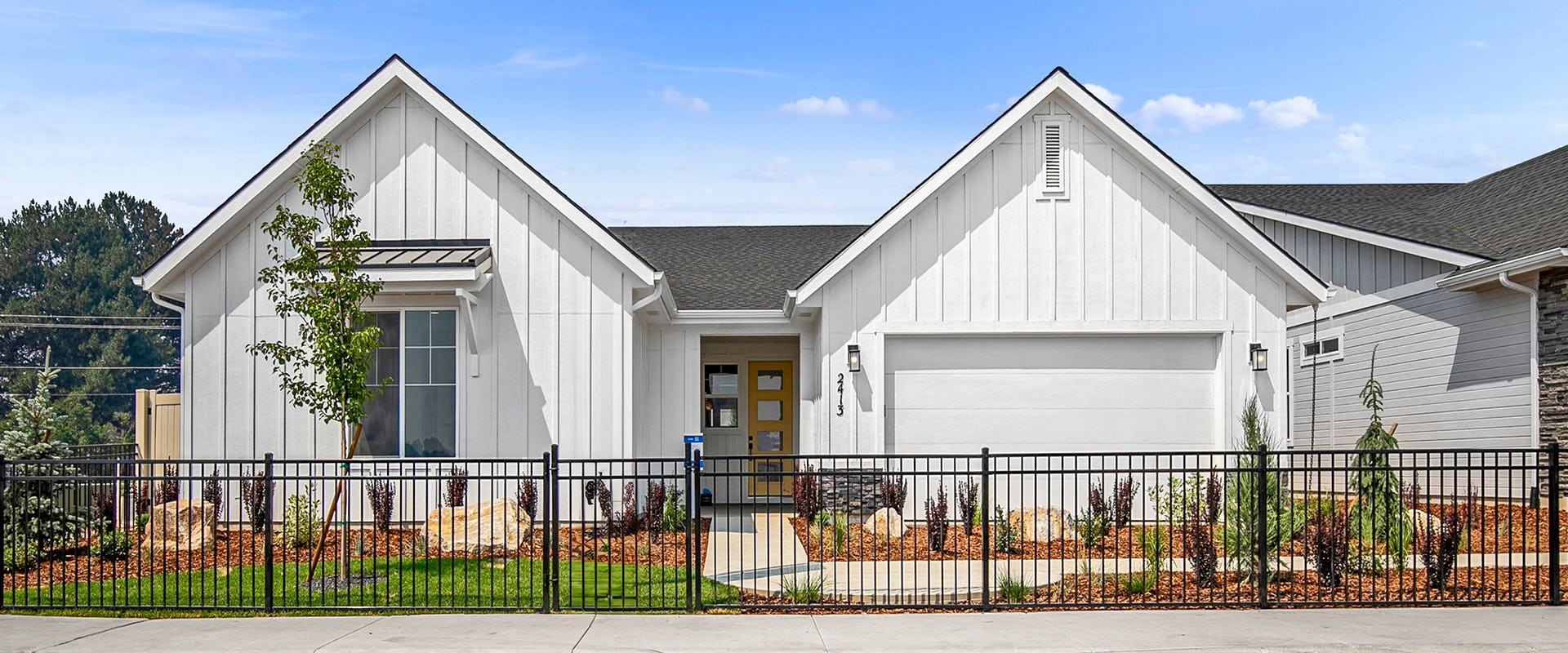The Oak is a stunning one-story home designed for modern living, featuring three to four bedrooms and three bathrooms. Park your vehicles in the two-car garage with a convenient third interior bay for added storage. As you enter from the garage, you'll find a drop zone with a mud bench, keeping your entryway organized and clutter-free. The bright, open kitchen overlooking the dining nook and spacious great room creates an inviting atmosphere for gatherings and everyday living. The primary suite is a true retreat, featuring a private bath with a separate shower, a free-standing tub, two sinks, and a large walk-in closet, providing ample storage and comfort. A pocket office offers a convenient space for work or study, while two additional bedrooms share a well-appointed bathroom. An additional full bath caters to guests, ensuring convenience for all. The flex room provides the perfect solution, allowing you to tailor this home to fit your lifestyle seamlessly. The covered patio offers a seamless transition between indoor and outdoor living. The Oak's thoughtful design and practical features will elevate your living experience.